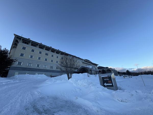 バラギ湖から 2 km の場所にあるモダンな外装のマウンテン・リゾートホテル。